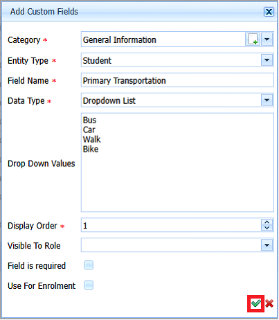 k) Use For Enrolment: These fields will also be available on the Enrolment Wizard and Online Enrolment Form.